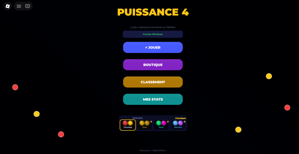 Je viens de créer un nouveau jeu pour Roblox basé sur le jeu Puissance 4 en 2D, testez le et dites moi ce que vous en pensez.